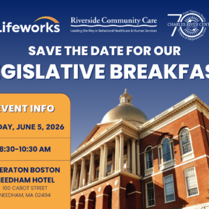 Legislative Breakfast Join Lifeworks, Riverside Community Care, and the Charles River Center for our 2026 Legislative Breakfast! 05 Jun 8:30 am - 10:30 am Sheraton Boston Needham Hotel 100 Cabot St, Needham, MA 02494